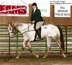 "Ace" sired all around horses who have excelled in the show ring and as working horses. Offspring of Ace have earned ApHC Points in: Open Classes: Most Colorful, Halter, Hunter in Hand, Western Pleasure, Hunter Under Saddle, Pre-Green Hunter, Hunter Hack, Stakes, Stumps, Keyhole, Figure 8 Stake Race, Reining. Non-Pro Classes: Most Colorful, Halter, Showmanship, Western Pleasure, Western Equitation, Trail, Hunter Under Saddle, Working Hunter, Hunt Seat Equitation, Hunt Seat Equitation over Fences, Hunter Hack, Stakes, Stumps, Reining, Keyhole, Figure 8 Stake Race. Youth: Walk-Trot Classes and Leadline. Some of his offspring are pictured below: |